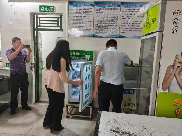 黃少娥副縣長一行仔細察看了廚房、消毒柜、餐具、“三防”設備、食品儲存、灶臺排放等情況,對食材采購、驗收管理、食材入庫、食品留樣等逐一檢查。同時,認真查閱了食堂采購記錄、陪餐記錄及消毒記錄等臺賬資料。黃少娥副縣長對學校食堂衛生和食品安全狀況等給予了肯定,指出了存在問題,提出改進建議,要求學校全力抓好學生后勤工作,把學校食堂辦成領導放心、家長信任、學生滿意的食堂。