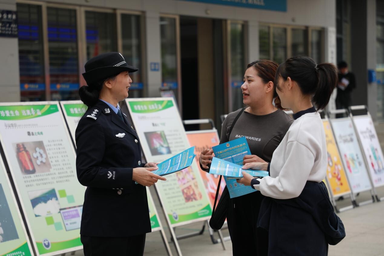 縣公安局工作人員向群眾宣傳預(yù)防和打擊電信網(wǎng)絡(luò)詐騙、盜竊犯罪、走私偷渡知識
