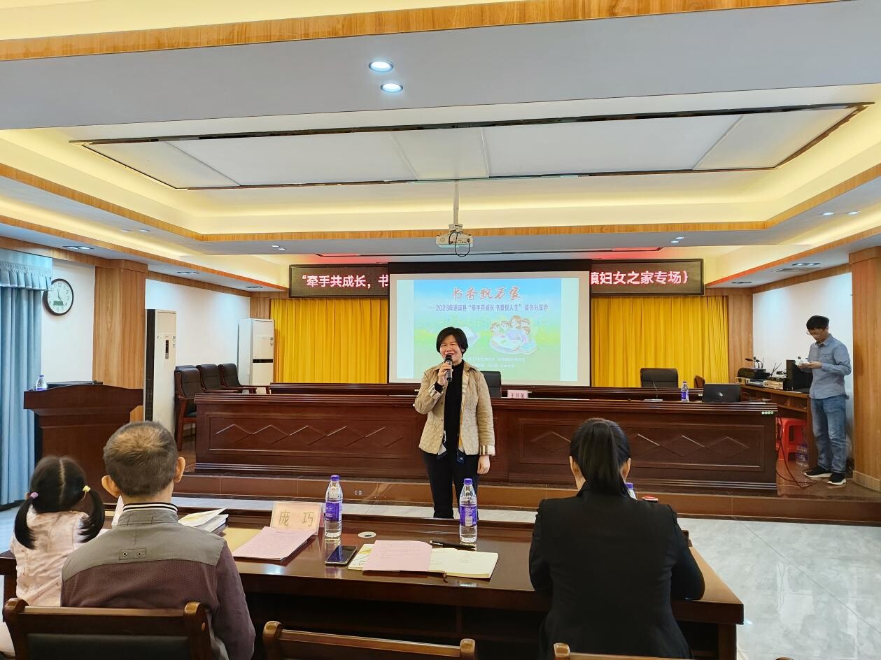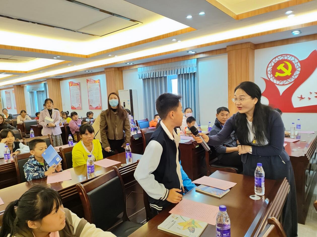 為深入學習貫徹黨的二十大精神,貫徹落實習近平總書記關于注重家庭家教家風建設重要論述和推動全民閱讀系列重要指示精神,加強遂溪縣“守護童年 牽手共成長”未成年人思想道德品牌建設,助力廣東省兒童友好示范縣創(chuàng)建工作,認真落實立德樹人根本任務,做好兒童成長的引路人、守護人、筑夢人。20231118日上午,遂溪縣第四期“牽手共成長 書香悅人生”讀書分享會活動在遂溪縣嶺北鎮(zhèn)文化樓三樓會議室舉辦,70多名家長和小朋友參加了活動。