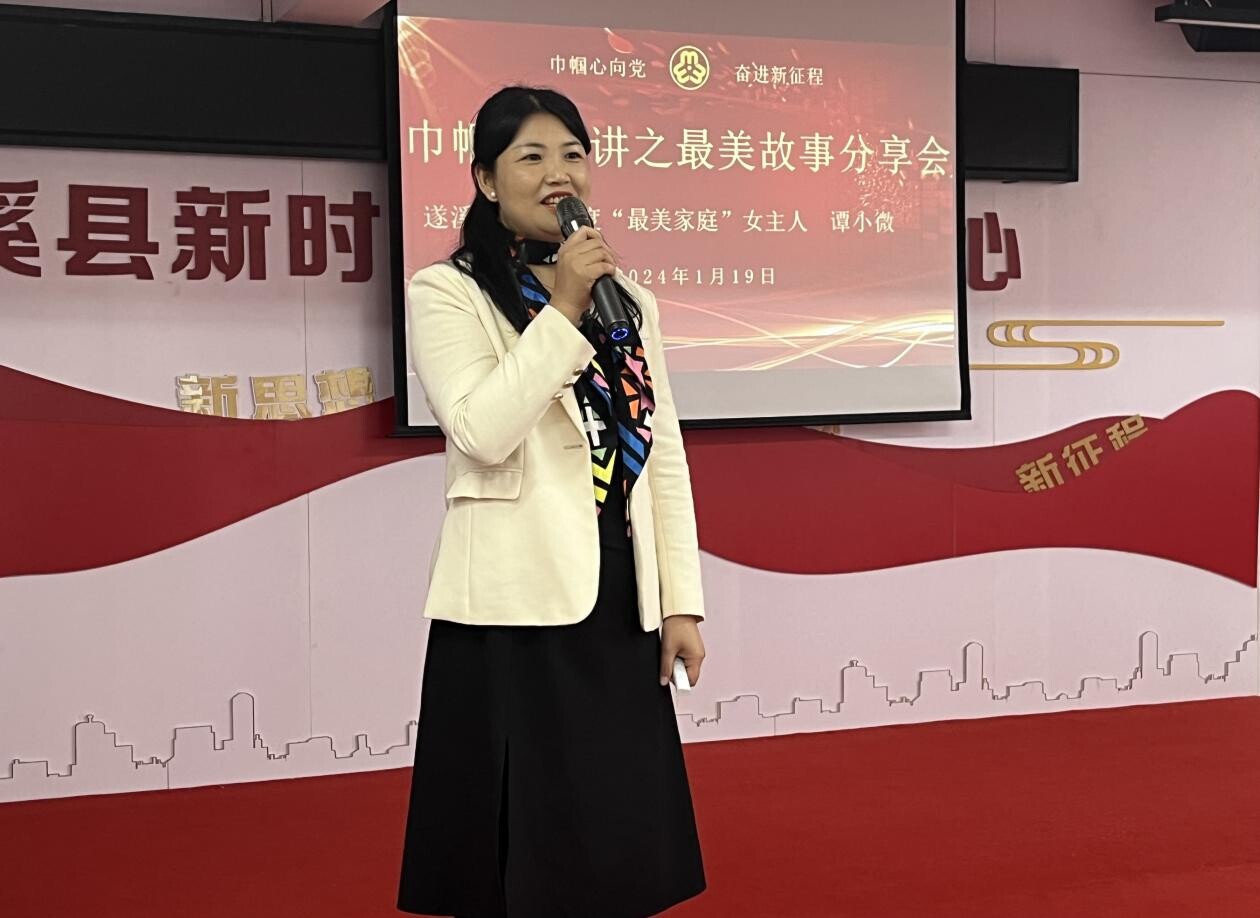 遂溪縣2023年度“最美家庭”女主人譚小微在分享最美故事)