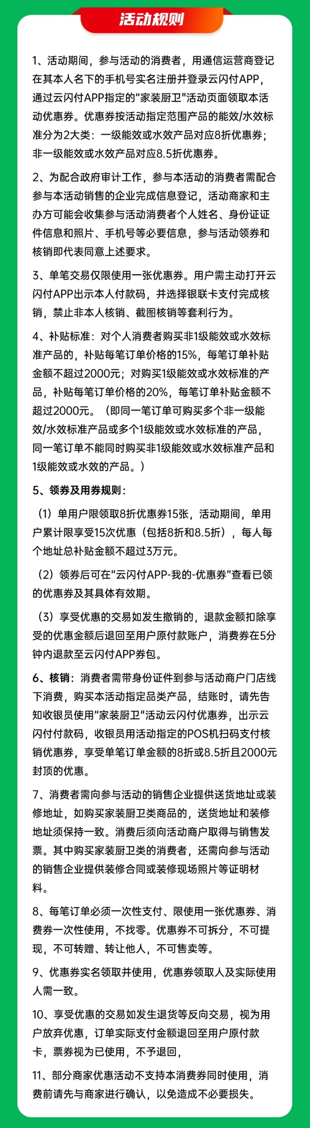 注:1.補貼申請人為個人消費者,且在其他省市未享受過當地家裝廚衛“煥新”活動促銷補貼。