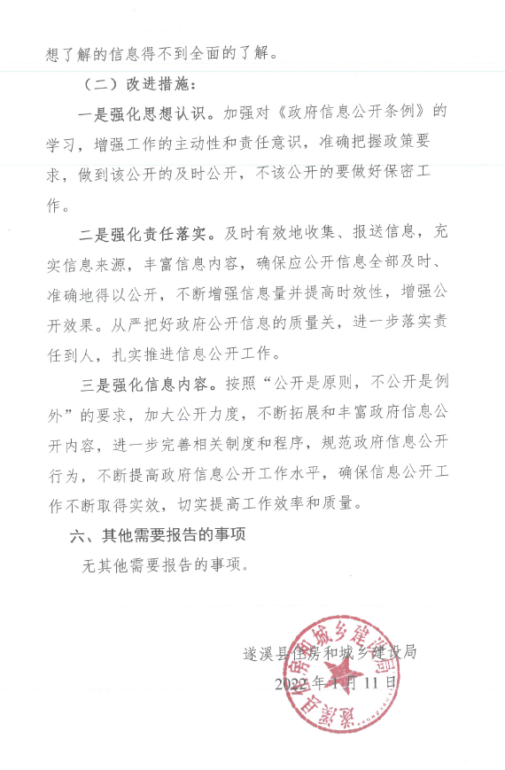 遂溪縣住房和城鄉建設局2021年度政府信息公開工作年度報告