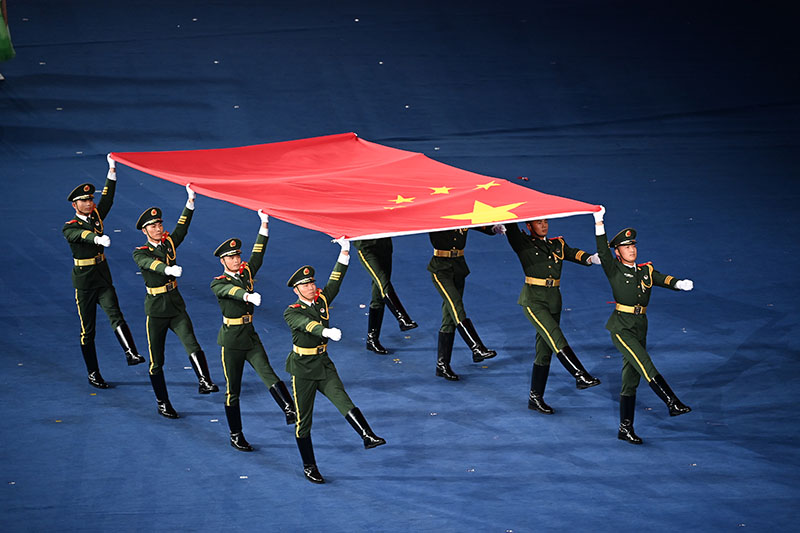 10月22日,中華人民共和國國旗在開幕式上升起。
