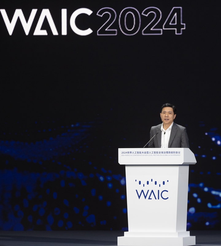 7月4日,百度創始人、董事長兼首席執行官李彥宏在2024世界人工智能大會產業發展主論壇上發表演講。