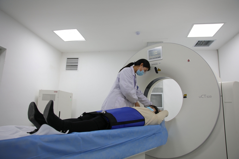 2023年3月2日,安徽省合肥市包河區煙墩街道社區衛生服務中心的醫護人員為患者進行CT檢查。新華社記者 曹力 攝
