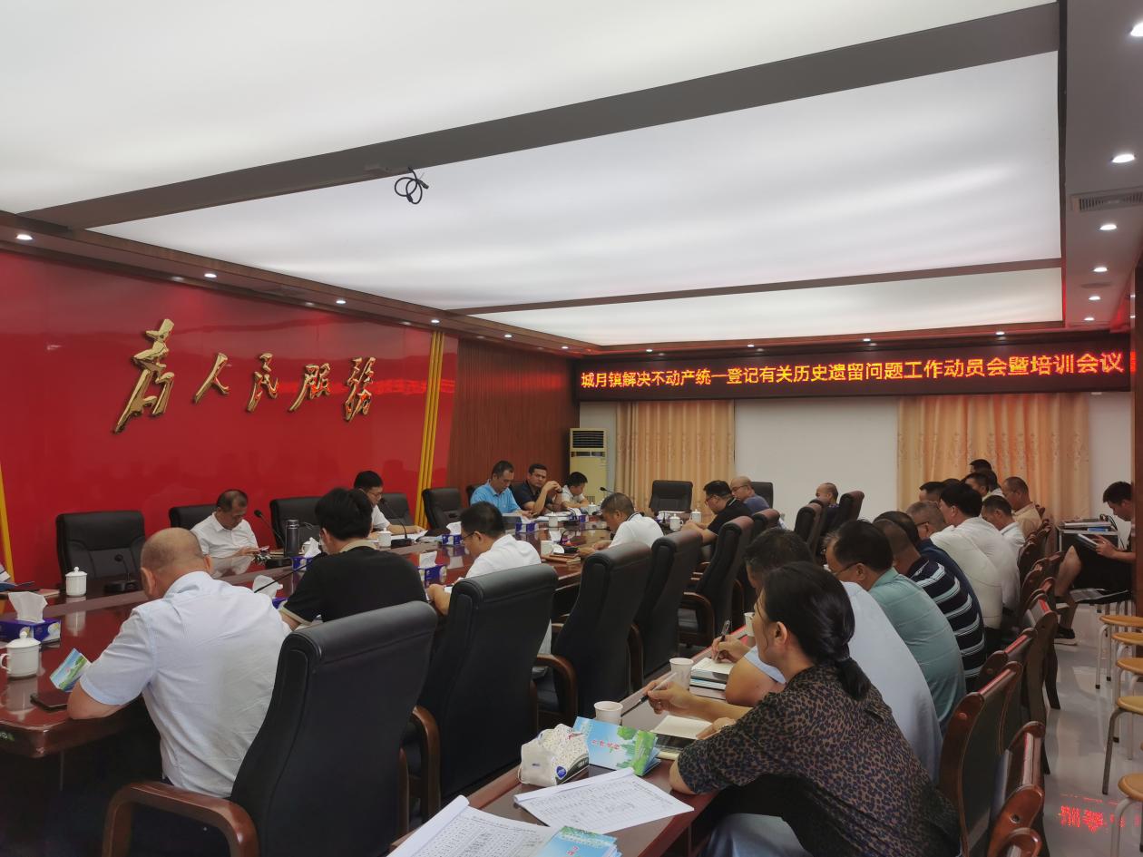 為進一步加快解決城月鎮不動產統一登記有關歷史遺留問題,2024年7月16日下午,城月鎮召開解決不動產統一登記有關歷史遺留問題工作動員會暨培訓會議,會議由城月鎮黨委書記王武慶主持,鎮領導班子成員以及各村支部書記參會。