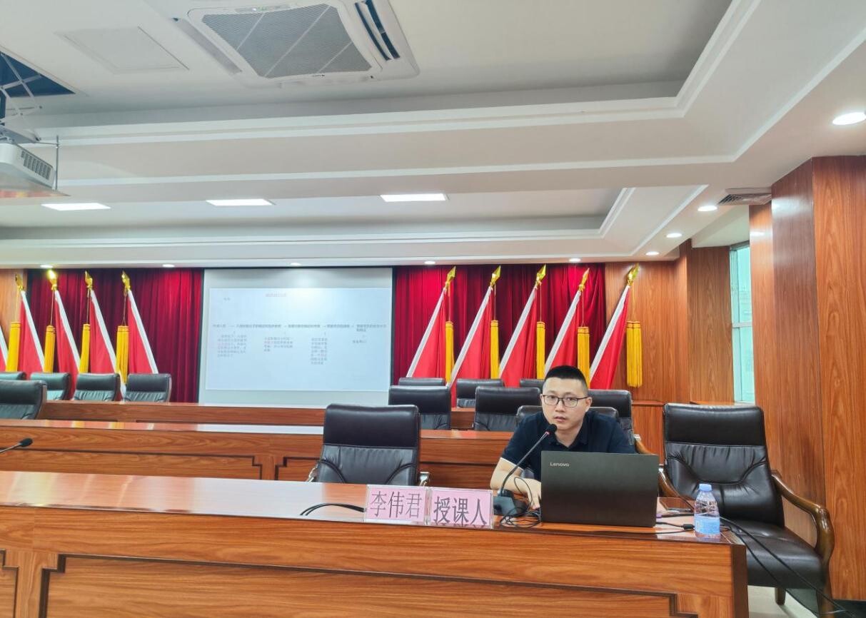 圖為縣委組織部黨建指導中心駐洋青鎮黨建指導員李偉君為學員授課