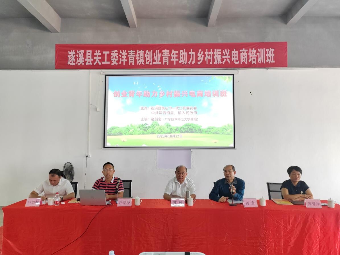 為深入學習貫徹黨的二十大精神,聚焦“百縣千鎮萬村高質量發展工程”的部署要求,多方位宣傳洋青鎮特色鄉村景點、特色美食和帶動農特產品銷售,帶動本地創新創業,充分發揮電子商務在推進鄉村振興中的重要作用。10月17日上午,遂溪縣關工委聯合洋青鎮黨委、政府舉辦遂溪縣關工委創業青年助力鄉村振興電商培訓班。縣關工委主任林彬、縣關工委副主任周寶、縣關工委副主任陳輔琪、縣關工委秘書長陳梓、廣東技術師范大學教授、碩士生導師趙劍冬教授等領導以及70余名電商行業從業人員參加開班儀式。