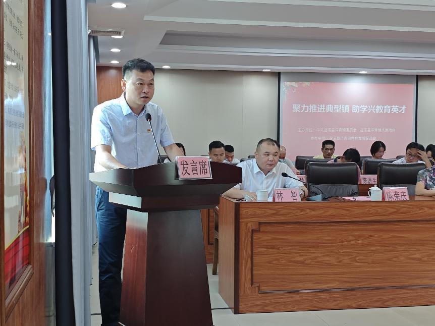 圖為洋青鎮(zhèn)教育發(fā)展促進(jìn)會(huì)理事會(huì)會(huì)長(zhǎng)尹浩先生致辭