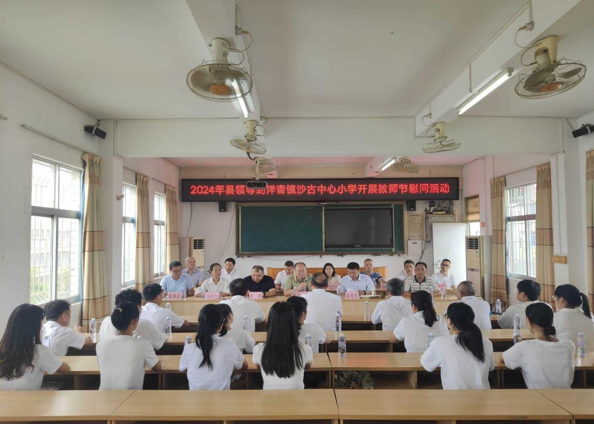 “教師節快樂,老師們辛苦了!”陳輝一行先后走訪了洋青中學、沙古中心小學等學校,每到一處都與校領導及教師代表們親切交談,關心詢問他們的教學工作和生活情況,認真察看了解學校的校園環境和配套設施,詳細了解學校的教學管理、師資隊伍、教學質量、學生食宿等方面情況,對各學校的育人環境和取得的成績給予了充分肯定。