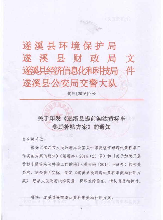 遂溪縣提前淘汰黃標車獎勵補貼方案