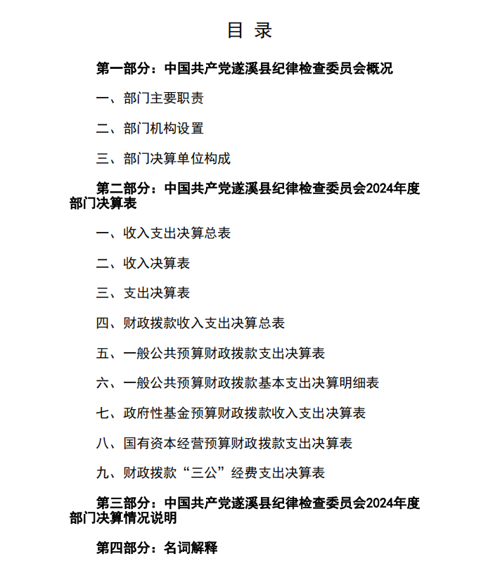 2024年度中國共產黨遂溪縣紀律檢查委員會部門決算 | | 作者: | 來源:中國共產黨遂溪縣紀律檢查委員會 | 時間:2025-09-16 15:20:51 點擊數:- 2024年度中國共產黨遂溪縣紀律檢查委員會部門決算.pdf 【打印正文】
