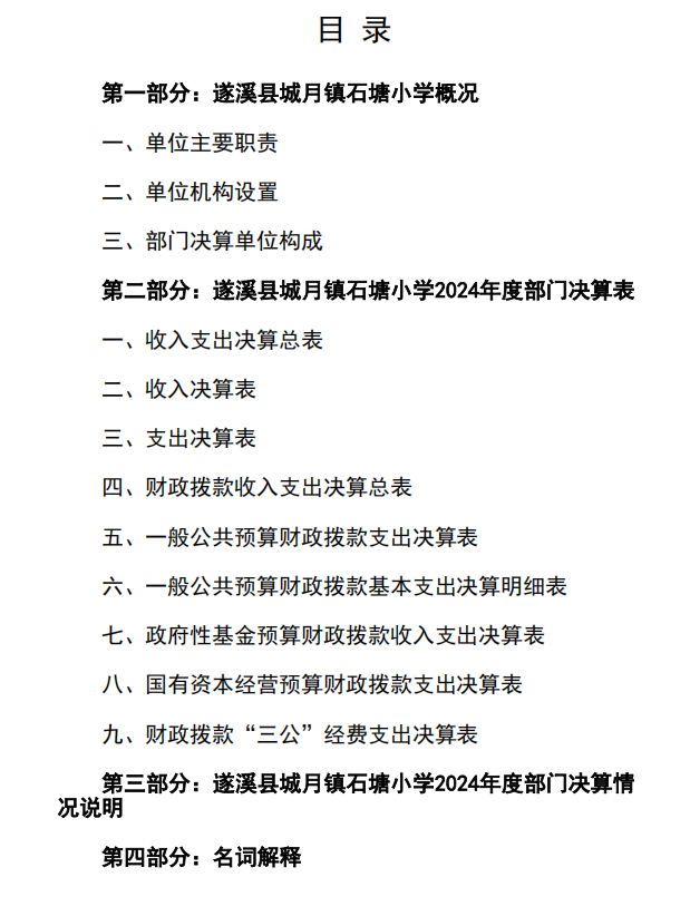 2024年度遂溪縣城月鎮(zhèn)石塘小學(xué)部門決算 | | 作者: | 來源:遂溪縣教育局 | 時間:2025-09-17 16:28:11 點(diǎn)擊數(shù):- 2024年度遂溪縣城月鎮(zhèn)石塘小學(xué)部門決算.pdf 【打印正文】