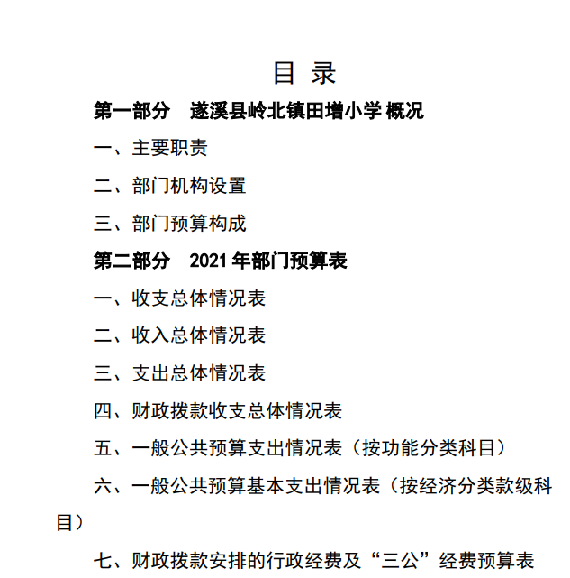 2021年遂溪縣嶺北鎮田增小學部門預算