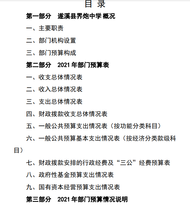 界炮中學2021年部門預算